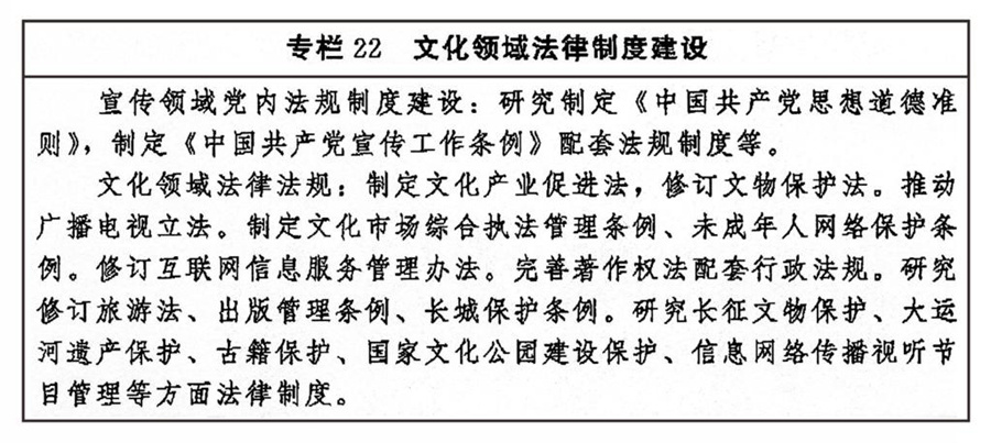 ——中國(guó)特色社會(huì)主義文化制度更加完善,文化法律法規(guī)體系和政策體系更加健全,文化治理效能進(jìn)一步提升。