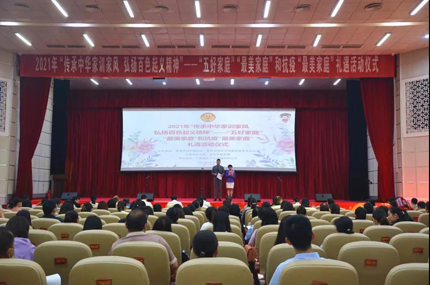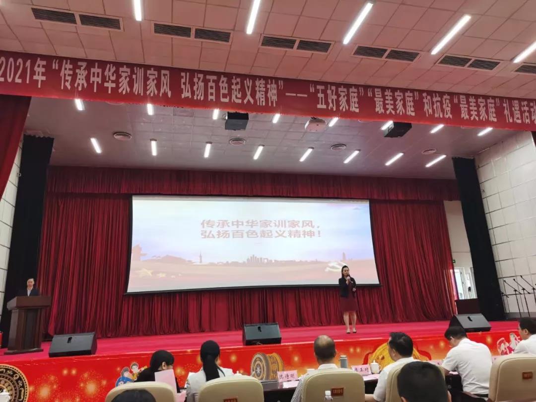 ????????為弘揚(yáng)中華民族家庭美德、樹立良好家風(fēng)、激勵(lì)抗疫精神,落實(shí)全國(guó)婦聯(lián)、自治區(qū)婦聯(lián)關(guān)于開展尋找“最美家庭”活動(dòng)精神。4月30日,由百色市婦聯(lián)、市文明辦、市總工會(huì)、市教育局聯(lián)合舉辦,廣西益眾文化傳媒有限公司承辦的2021年“傳承中華家訓(xùn)家風(fēng)?弘揚(yáng)百色起義精神”——“五好家庭”“最美家庭”和抗疫“最美家庭”禮遇活動(dòng)儀式在右江區(qū)禮堂舉行。來自2020年“五好家庭”“最美家庭”和抗疫“最美家庭”代表、“最美家庭”禮遇愛心單位代表以及百色市市直機(jī)關(guān)、企事業(yè)單位和社會(huì)各界代表等共計(jì)200多人參加活動(dòng)。