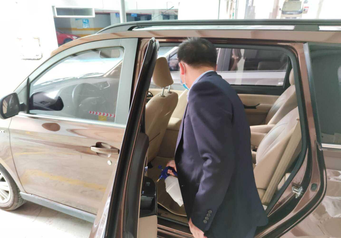出車(chē)前員工對(duì)車(chē)輛進(jìn)行消洗