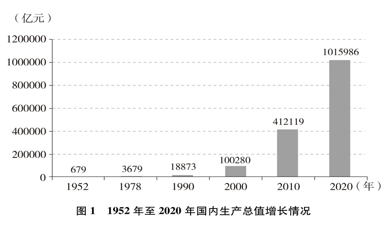 經(jīng)濟實力大幅提升。中國國內(nèi)生產(chǎn)總值從1952年的679.1億元躍升至2020年的101.6萬億元,經(jīng)濟總量占全球經(jīng)濟比重超過17%,穩(wěn)居世界第二大經(jīng)濟體(圖1)。人均國內(nèi)生產(chǎn)總值從1952年的幾十美元增至2020年的超過1萬美元,實現(xiàn)從低收入國家到中等偏上收入國家的歷史性跨越(圖2)。制造業(yè)增加值多年位居世界首位,220多種工業(yè)產(chǎn)品產(chǎn)量居世界第一,自2010年起連續(xù)11年位居世界第一制造業(yè)大國。中國已是全球貨物貿(mào)易第一大國、服務(wù)貿(mào)易第二大國、商品消費第二大國、外匯儲備第一大國,2020年利用外資居全球第一。不斷邁向共同富裕的14億多人口,其中有超過4億并不斷擴大的中等收入群體,是全球最具成長性的超大規(guī)模市場,中國經(jīng)濟充滿活力,具有巨大潛力和充足后勁。2020年,中國率先控制新冠肺炎疫情,率先復(fù)工復(fù)產(chǎn),率先實現(xiàn)經(jīng)濟增長由負轉(zhuǎn)正,充分彰顯中國經(jīng)濟的強勁韌性。