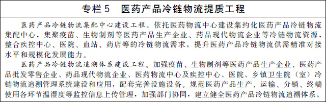 完善醫(yī)藥產(chǎn)品冷鏈物流設(shè)施網(wǎng)絡(luò)。鼓勵(lì)醫(yī)藥流通企業(yè)、藥品現(xiàn)代物流企業(yè)建設(shè)醫(yī)藥物流中心,完善醫(yī)藥冷庫網(wǎng)絡(luò)化布局及配套冷鏈設(shè)施設(shè)備功能,提升醫(yī)藥產(chǎn)品冷鏈全程無縫銜接的信息化管理水平。推動(dòng)醫(yī)藥流通企業(yè)按《藥品經(jīng)營質(zhì)量管理規(guī)范》要求配備冷藏冷凍設(shè)施設(shè)備,支持疾控中心、醫(yī)院、鄉(xiāng)鎮(zhèn)衛(wèi)生院(室)等醫(yī)療網(wǎng)點(diǎn)提高醫(yī)藥產(chǎn)品冷鏈物流和使用環(huán)節(jié)的質(zhì)量保障水平。加強(qiáng)醫(yī)藥物流中心與冷鏈末端的無縫銜接,鼓勵(lì)發(fā)展多溫共配、接力配送等模式,探索發(fā)展超低溫配送,構(gòu)建廣覆蓋、高效率、低成本、安全可靠的醫(yī)藥產(chǎn)品冷鏈物流網(wǎng)絡(luò)。