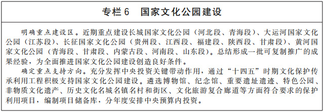 推進(jìn)國家文化公園建設(shè),生動呈現(xiàn)中華文化的獨(dú)特創(chuàng)造、價(jià)值理念和鮮明特色,樹立和突出各民族共享的中華文化符號和中華民族形象,探索新時(shí)代文物和文化資源保護(hù)傳承利用新路徑,把國家文化公園建設(shè)成為傳承中華文明的歷史文化走廊、中華民族共同精神家園、提升人民生活品質(zhì)的文化和旅游體驗(yàn)空間。加快建設(shè)長城、大運(yùn)河、長征、黃河等國家文化公園,整合具有突出意義、重要影響、重大主題的文物和文化資源,重點(diǎn)建設(shè)管控保護(hù)、主題展示、文旅融合、傳統(tǒng)利用四類主體功能區(qū),實(shí)施保護(hù)傳承、研究發(fā)掘、環(huán)境配套、文旅融合、數(shù)字再現(xiàn)五大工程,突出“萬里長城”“千年運(yùn)河”“兩萬五千里長征”“九曲黃河”整體辨識度。推進(jìn)優(yōu)質(zhì)文化旅游資源一體化開發(fā),科學(xué)規(guī)劃、開發(fā)文化旅游產(chǎn)品和商品。推出參觀游覽聯(lián)程聯(lián)運(yùn)經(jīng)典線路,開展整體品牌塑造和營銷推介。