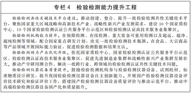 加強科技支撐體系建設(shè)。鼓勵市場監(jiān)管領(lǐng)域科研創(chuàng)新,加強市場監(jiān)管重點領(lǐng)域關(guān)鍵技術(shù)攻關(guān)和先進裝備研制,布局一批國家和部門科技創(chuàng)新基地。重點推進中國標準化研究院國家標準館建設(shè)工程和昌平實驗基地二期建設(shè)工程、中國計量科學研究院實驗基地二期建設(shè)工程、國家食品質(zhì)量安全檢(監(jiān))測能力建設(shè)工程、國家消費品質(zhì)量安全風險監(jiān)測預警能力建設(shè)工程等建設(shè),全面提升市場監(jiān)管科技支撐能力。