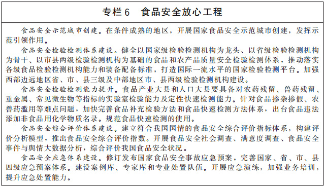 加強食品安全源頭治理。加強食品全鏈條質(zhì)量安全監(jiān)管,推進食品安全放心工程建設(shè)攻堅行動,加大重點領(lǐng)域食品安全問題聯(lián)合整治力度。提高糧食收儲質(zhì)量,防止不符合食品安全標準的糧食流入口糧市場和食品生產(chǎn)企業(yè)。加快制修訂農(nóng)藥殘留、獸藥殘留、重金屬、食品污染物、致病性微生物等食品安全通用標準,推進產(chǎn)業(yè)發(fā)展和監(jiān)管急需的食品安全基礎(chǔ)標準、產(chǎn)品標準、標簽標準、配套檢驗方法標準制修訂,完善食品添加劑、食品相關(guān)產(chǎn)品等標準。加快食品相關(guān)標準樣品研制。加強進口食品安全監(jiān)管,嚴防輸入型食品安全風險。實施農(nóng)產(chǎn)品原產(chǎn)地追溯促進行動,打造追溯管理規(guī)范、市場機制成熟、帶動能力強的農(nóng)產(chǎn)品追溯標桿企業(yè),推動全程追溯協(xié)作和示范推廣。