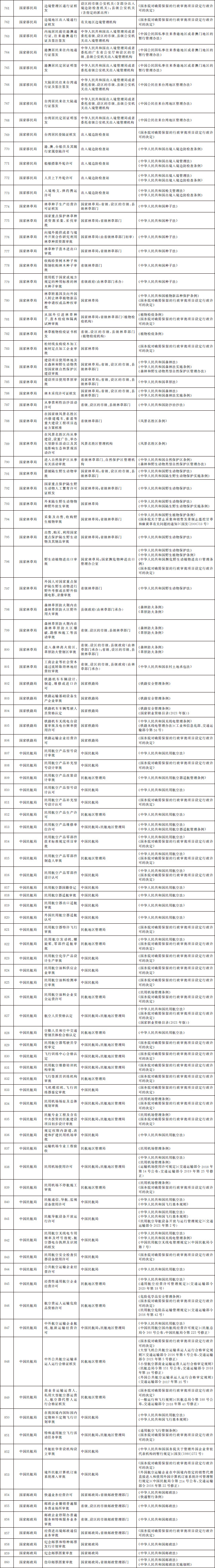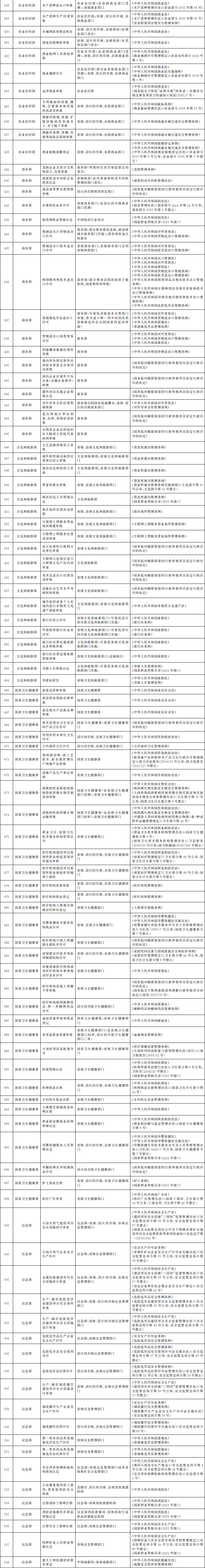 法律、行政法規(guī)、國務(wù)院決定設(shè)定的行政許可事項清單